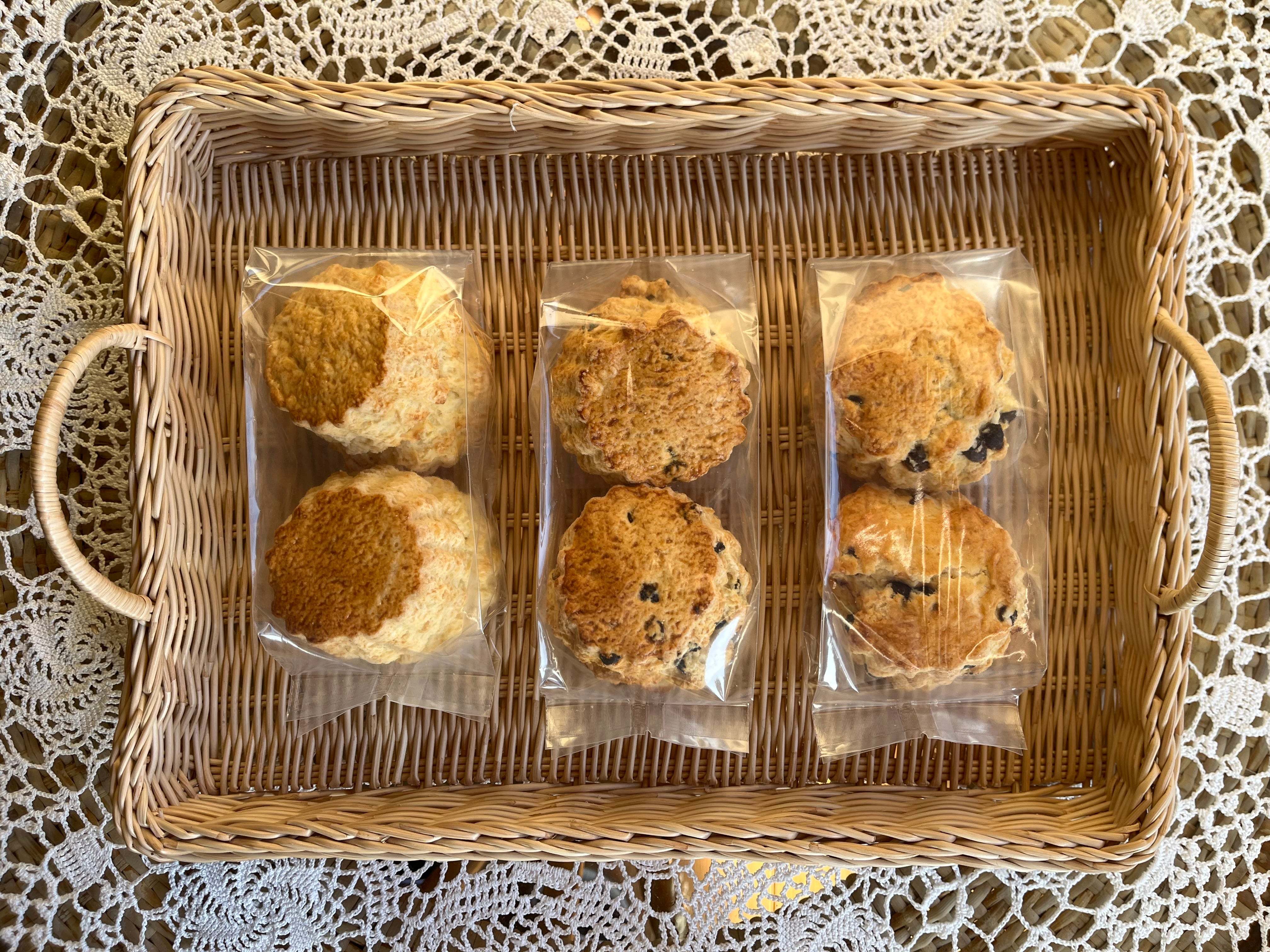 ※こちらは3種類をセットにさせていただきました。ご希望のスコーン種類・数量をお選びいただく場合は、単品商品より別途お求めくださいませ。